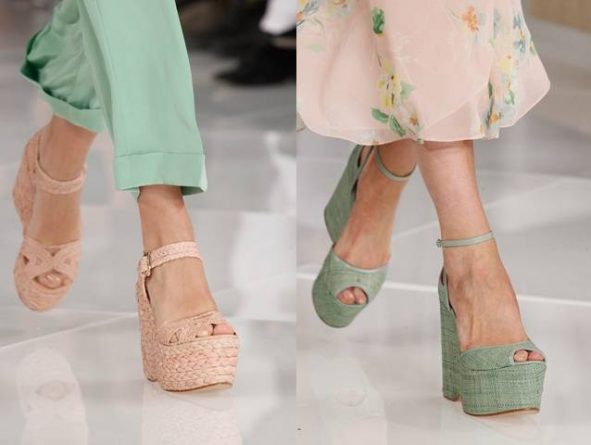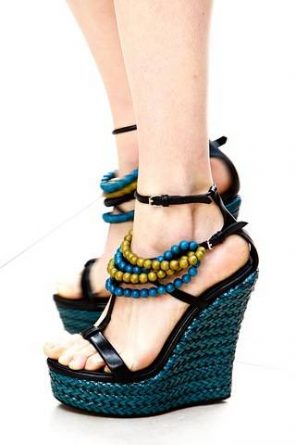Com plataformas altas, os saltos estilo Anabela seguem entre as principais propostas para as sandálias femininas das próximas temporadas. Trabalhados com materiais texturizados, animal prints, tressês, trançados e couro colorido, esses modelos foram destaques, sobretudo, na Semana de moda de Londres, onde grifes como a Mulberry e a Burberry investiram nessas tendências para arrematar os looks de suas novas coleções.